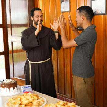 Na manhã do dia 4 de agosto, colaboradores e frades se reuniram no refeitório do Convento São Francisco de Assis, em Anápolis (GO), para celebrar os aniversários de Frei Raylan (01/08) e Frei Rogério (04/08). Ambos atuam diretamente na Sede Provincial, partilhando o cotidiano e os serviços com a equipe administrativa da Província do Santíssimo Nome de Jesus do Brasil.